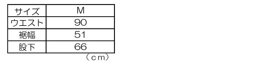 ウエスト:90、渡り幅:51、前股ぐり:42、後ろ股ぐり:49、胸当て(上幅):25
